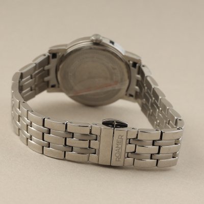 Dit Roamer horloge heeft een kast gemaakt van Roestvrijstaal met een diameter van 30 mm en is voorzien van een metalen band. In de kast bevindt zich een Ronda kwaliteitsuurwerk en is afgewerkt met Saffierglas.