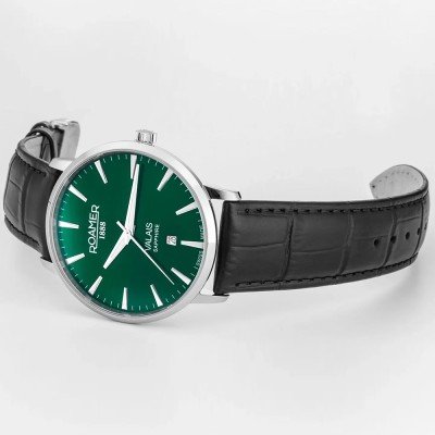 Dit Roamer horloge heeft een kast gemaakt van Roestvrijstaal met een diameter van 42 mm en is voorzien van een leren band. In de kast bevindt zich een Ronda kwaliteitsuurwerk en is afgewerkt met Saffierglas.