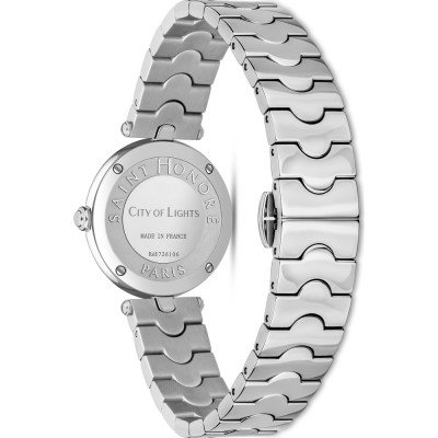 Dit Saint Honoré horloge heeft een kast gemaakt van Roestvrijstaal met een diameter van 30 mm en is voorzien van een Roestvrijstaal band. In de kast bevindt zich een Ronda kwaliteitsuurwerk en is afgewerkt met Mineraalglas.