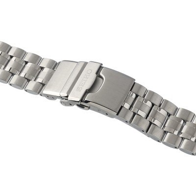 Dit Seiko horlogebandje is gemaakt van roestvrij staal en wordt aan het horloge bevestigd door middel van bandpennen. De band heeft een breedte van 20 mm en wordt gesloten door middel van een vouwsluiting met drukknoppen en veiligheidsklep. De band heeft geen rechte aanzet wat betekent dat deze band alleen geschikt is voor de horloges die hieronder worden vermeld.
