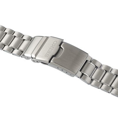 Dit Seiko horlogebandje is gemaakt van roestvrij staal en wordt aan het horloge bevestigd door middel van bandpennen. De band heeft een breedte van 20 mm en wordt gesloten door middel van een vouwsluiting met drukknoppen en veiligheidsklep. De band heeft geen rechte aanzet wat betekent dat deze band alleen geschikt is voor de horloges die hieronder worden vermeld.