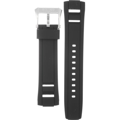 Dit Seiko horlogebandje is gemaakt van siliconen en wordt aan het horloge bevestigd door middel van bandpennen. De band heeft een breedte van 22 mm en wordt gesloten door middel van een gesp. De band heeft geen rechte aanzet wat betekent dat deze band alleen geschikt is voor de horloges die hieronder worden vermeld.