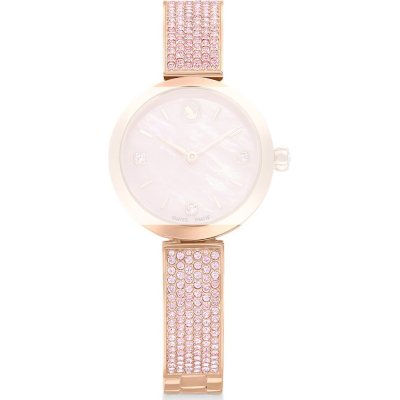 Dit Swarovski horlogebandje is gemaakt van roestvrij staal en wordt aan het horloge bevestigd door middel van stalen pennen. De band heeft een breedte van 10 mm en wordt gesloten door middel van een sieraadsluiting. De band heeft geen rechte aanzet wat betekent dat deze band alleen geschikt is voor de horloges die hieronder worden vermeld.