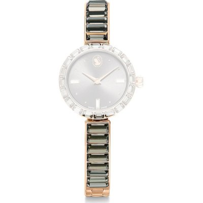 Dit Swarovski horlogebandje is gemaakt van roestvrij staal en wordt aan het horloge bevestigd door middel van stalen pennen. De band heeft een breedte van 8 mm en wordt gesloten door middel van een sieraadsluiting. De band heeft geen rechte aanzet wat betekent dat deze band alleen geschikt is voor de horloges die hieronder worden vermeld.