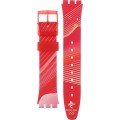Dit Swatch horlogebandje is gemaakt van siliconen en wordt aan het horloge bevestigd door middel van stalen pennen. De band heeft een breedte van 17 mm en wordt gesloten door middel van een gesp. De band heeft geen rechte aanzet wat betekent dat deze band alleen geschikt is voor de horloges die hieronder worden vermeld.