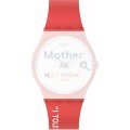 Dit Swatch horlogebandje is gemaakt van siliconen en wordt aan het horloge bevestigd door middel van stalen pennen. De band heeft een breedte van 17 mm en wordt gesloten door middel van een gesp. De band heeft geen rechte aanzet wat betekent dat deze band alleen geschikt is voor de horloges die hieronder worden vermeld.