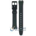 Dit Swatch horlogebandje is gemaakt van kunststof en wordt aan het horloge bevestigd door middel van stalen pennen. De band heeft een breedte van 12 mm en wordt gesloten door middel van een gesp. De band heeft geen rechte aanzet wat betekent dat deze band alleen geschikt is voor de horloges die hieronder worden vermeld.