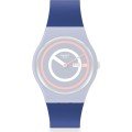 Dit Swatch horlogebandje is gemaakt van siliconen en wordt aan het horloge bevestigd door middel van stalen pennen. De band heeft een breedte van 17 mm en wordt gesloten door middel van een gesp. De band heeft geen rechte aanzet wat betekent dat deze band alleen geschikt is voor de horloges die hieronder worden vermeld.