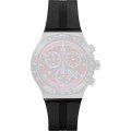 Dit Swatch horlogebandje is gemaakt van siliconen en wordt aan het horloge bevestigd door middel van stalen pennen. De band heeft een breedte van 21 mm en wordt gesloten door middel van een gesp. De band heeft geen rechte aanzet wat betekent dat deze band alleen geschikt is voor de horloges die hieronder worden vermeld.