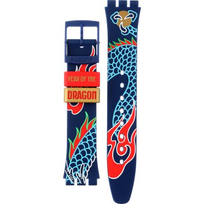 Dit Swatch horlogebandje is gemaakt van siliconen en wordt aan het horloge bevestigd door middel van stalen pennen. De band heeft een breedte van 17 mm en wordt gesloten door middel van een gesp. De band heeft geen rechte aanzet wat betekent dat deze band alleen geschikt is voor de horloges die hieronder worden vermeld.