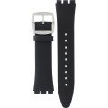Dit Swatch horlogebandje is gemaakt van leer en wordt aan het horloge bevestigd door middel van stalen pennen. De band heeft een breedte van 20 mm en wordt gesloten door middel van een gesp. De band heeft geen rechte aanzet wat betekent dat deze band alleen geschikt is voor de horloges die hieronder worden vermeld.
