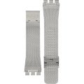 Dit Swatch horlogebandje is gemaakt van roestvrij staal en wordt aan het horloge bevestigd door middel van stalen pennen. De band heeft een breedte van 20 mm en wordt gesloten door middel van een milanese sluiting. De band heeft geen rechte aanzet wat betekent dat deze band alleen geschikt is voor de horloges die hieronder worden vermeld.