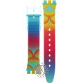 Dit Swatch horlogebandje is gemaakt van kunststof en wordt aan het horloge bevestigd door middel van stalen pennen. De band heeft een breedte van 17 mm en wordt gesloten door middel van een gesp. De band heeft geen rechte aanzet wat betekent dat deze band alleen geschikt is voor de horloges die hieronder worden vermeld.
