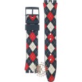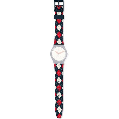 Dit Swatch horlogebandje is gemaakt van siliconen en wordt aan het horloge bevestigd door middel van stalen pennen. De band heeft een breedte van 17 mm en wordt gesloten door middel van een gesp. De band heeft geen rechte aanzet wat betekent dat deze band alleen geschikt is voor de horloges die hieronder worden vermeld.