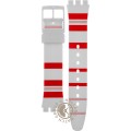 Dit Swatch horlogebandje is gemaakt van siliconen en wordt aan het horloge bevestigd door middel van stalen pennen. De band heeft een breedte van 17 mm en wordt gesloten door middel van een gesp. De band heeft geen rechte aanzet wat betekent dat deze band alleen geschikt is voor de horloges die hieronder worden vermeld.