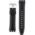 Dit Swatch horlogebandje is gemaakt van leer en wordt aan het horloge bevestigd door middel van stalen pennen. De band heeft een breedte van 21 mm en wordt gesloten door middel van een gesp. De band heeft geen rechte aanzet wat betekent dat deze band alleen geschikt is voor de horloges die hieronder worden vermeld.