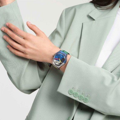 Dit Swatch horloge heeft een kast gemaakt van Kunststof met een diameter van 41 mm en is voorzien van een Rubber band. In de kast bevindt zich een ETA kwaliteitsuurwerk en is afgewerkt met Acrylglas.