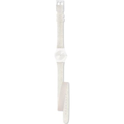 Dit Swatch horlogebandje is gemaakt van siliconen en wordt aan het horloge bevestigd door middel van stalen pennen. De band heeft een breedte van 12 mm en wordt gesloten door middel van een gesp. De band heeft geen rechte aanzet wat betekent dat deze band alleen geschikt is voor de horloges die hieronder worden vermeld.