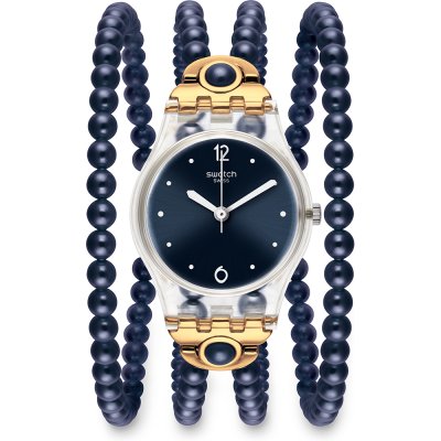 Dit Swatch horlogebandje is gemaakt van kunststof en wordt aan het horloge bevestigd door middel van stalen pennen. De band heeft een breedte van 12 mm. De band heeft geen rechte aanzet wat betekent dat deze band alleen geschikt is voor de horloges die hieronder worden vermeld.