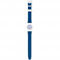 Dit Swatch horlogebandje is gemaakt van siliconen en wordt aan het horloge bevestigd door middel van stalen pennen. De band heeft een breedte van 12 mm en wordt gesloten door middel van een gesp. De band heeft geen rechte aanzet wat betekent dat deze band alleen geschikt is voor de horloges die hieronder worden vermeld.
