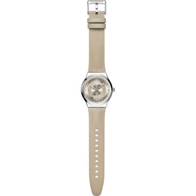 Dit Swatch horloge heeft een kast gemaakt van Roestvrijstaal met een diameter van 42 mm en is voorzien van een leren band. In de kast bevindt zich een ETA kwaliteitsuurwerk en is afgewerkt met Mineraalglas.