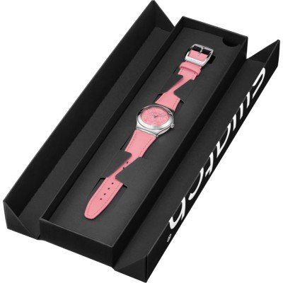 Dit Swatch horloge heeft een kast gemaakt van Roestvrijstaal met een diameter van 33 mm en is voorzien van een leren band. In de kast bevindt zich een ETA kwaliteitsuurwerk en is afgewerkt met Acrylglas.