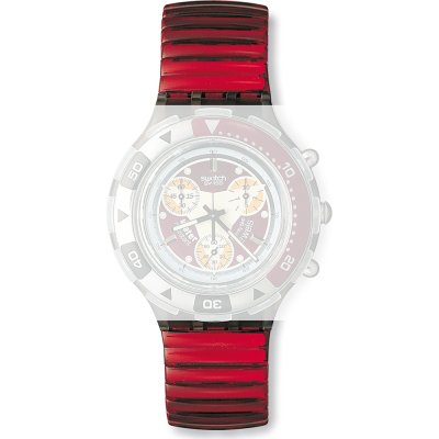 Dit Swatch horlogebandje is gemaakt van metaal en wordt aan het horloge bevestigd door middel van stalen pennen. De band heeft een breedte van 19 mm. De band heeft geen rechte aanzet wat betekent dat deze band alleen geschikt is voor de horloges die hieronder worden vermeld.