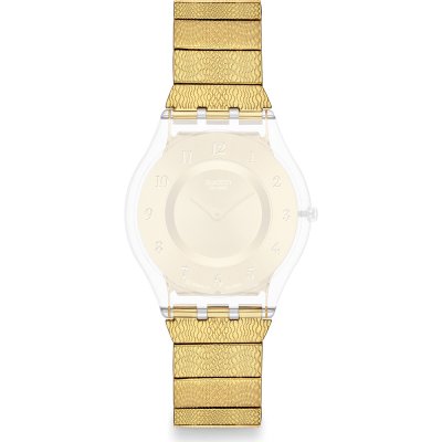 Dit Swatch horlogebandje is gemaakt van roestvrij staal en wordt aan het horloge bevestigd door middel van stalen pennen. De band heeft een breedte van 16.5 mm en wordt gesloten door middel van een onzichtbare vlindersluiting. De band heeft geen rechte aanzet wat betekent dat deze band alleen geschikt is voor de horloges die hieronder worden vermeld.