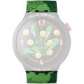 Dit Swatch horlogebandje is gemaakt van siliconen en wordt aan het horloge bevestigd door middel van stalen pennen. De band heeft een breedte van 19.7 mm en wordt gesloten door middel van een gesp. De band heeft geen rechte aanzet wat betekent dat deze band alleen geschikt is voor de horloges die hieronder worden vermeld.