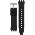 Dit Swatch horlogebandje is gemaakt van rubber en wordt aan het horloge bevestigd door middel van stalen pennen. De band heeft een breedte van 19.6 mm en wordt gesloten door middel van een gesp. De band heeft geen rechte aanzet wat betekent dat deze band alleen geschikt is voor de horloges die hieronder worden vermeld.