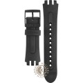 Dit Swatch horlogebandje is gemaakt van siliconen en wordt aan het horloge bevestigd door middel van stalen pennen. De band heeft een breedte van 21 mm en wordt gesloten door middel van een gesp. De band heeft geen rechte aanzet wat betekent dat deze band alleen geschikt is voor de horloges die hieronder worden vermeld.