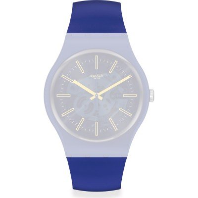 Dit Swatch horlogebandje is gemaakt van kunststof en wordt aan het horloge bevestigd door middel van stalen pennen. De band heeft een breedte van 19.7 mm en wordt gesloten door middel van een gesp. De band heeft geen rechte aanzet wat betekent dat deze band alleen geschikt is voor de horloges die hieronder worden vermeld.