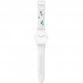 Dit Swatch horlogebandje is gemaakt van siliconen en wordt aan het horloge bevestigd door middel van stalen pennen. De band heeft een breedte van 19.7 mm en wordt gesloten door middel van een gesp. De band heeft geen rechte aanzet wat betekent dat deze band alleen geschikt is voor de horloges die hieronder worden vermeld.