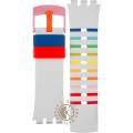 Dit Swatch horlogebandje is gemaakt van siliconen en wordt aan het horloge bevestigd door middel van stalen pennen. De band heeft een breedte van 28 mm en wordt gesloten door middel van een gesp. De band heeft geen rechte aanzet wat betekent dat deze band alleen geschikt is voor de horloges die hieronder worden vermeld.