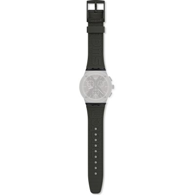 Dit Swatch horlogebandje is gemaakt van siliconen en wordt aan het horloge bevestigd door middel van stalen pennen. De band heeft een breedte van 20.1 mm en wordt gesloten door middel van een gesp. De band heeft geen rechte aanzet wat betekent dat deze band alleen geschikt is voor de horloges die hieronder worden vermeld.