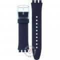 Dit Swatch horlogebandje is gemaakt van siliconen en wordt aan het horloge bevestigd door middel van stalen pennen. De band heeft een breedte van 19.8 mm en wordt gesloten door middel van een gesp. De band heeft geen rechte aanzet wat betekent dat deze band alleen geschikt is voor de horloges die hieronder worden vermeld.