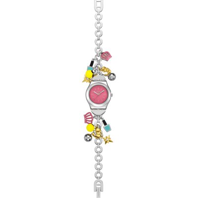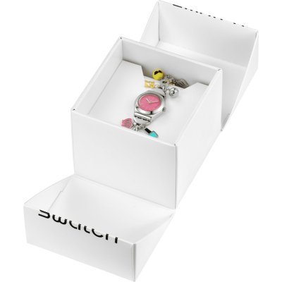 Dit Swatch horloge heeft een kast gemaakt van Roestvrijstaal met een diameter van 25 mm en is voorzien van een metalen band. In de kast bevindt zich een ETA kwaliteitsuurwerk en is afgewerkt met Acrylglas.