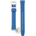 Dit Swatch horlogebandje is gemaakt van siliconen en wordt aan het horloge bevestigd door middel van stalen pennen. De band heeft een breedte van 12 mm en wordt gesloten door middel van een gesp. De band heeft geen rechte aanzet wat betekent dat deze band alleen geschikt is voor de horloges die hieronder worden vermeld.