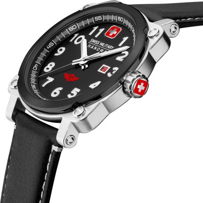 Dit Swiss Military Hanowa horloge heeft een kast gemaakt van Roestvrijstaal met een diameter van 43 mm en is voorzien van een leren band. In de kast bevindt zich een Timex kwaliteitsuurwerk en is afgewerkt met Saffierglas.
