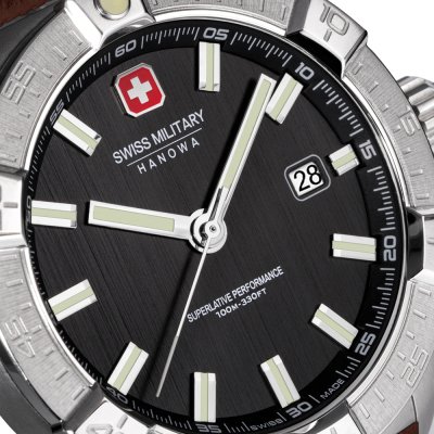 Dit Swiss Military Hanowa horloge heeft een kast gemaakt van Roestvrijstaal met een diameter van 42 mm en is voorzien van een leren band. In de kast bevindt zich een Ronda kwaliteitsuurwerk en is afgewerkt met Saffierglas.