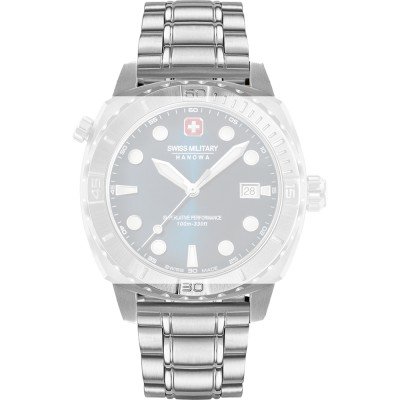 Dit Swiss Military Hanowa horlogebandje is gemaakt van roestvrij staal en wordt aan het horloge bevestigd door middel van quick release pushpins. De band heeft een breedte van 21 mm en wordt gesloten door middel van een vouwsluiting met drukknoppen en veiligheidsklep. De band heeft een rechte aanzet wat betekent dat deze band geschikt is voor alle Swiss Military Hanowa horloges met een rechte aanzet.