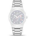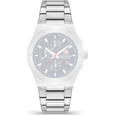 Dit Swiss Military Hanowa horlogebandje is gemaakt van roestvrij staal en wordt aan het horloge bevestigd door middel van stalen pennen. De band heeft een breedte van 26 mm en wordt gesloten door middel van een vouwsluiting met drukknoppen en veiligheidsklep. De band heeft geen rechte aanzet wat betekent dat deze band alleen geschikt is voor de horloges die hieronder worden vermeld.