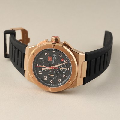 Dit Swiss Military Hanowa horloge heeft een kast gemaakt van Roestvrijstaal met een diameter van 43 mm en is voorzien van een Rubber band. In de kast bevindt zich een Ronda kwaliteitsuurwerk en is afgewerkt met Saffierglas.