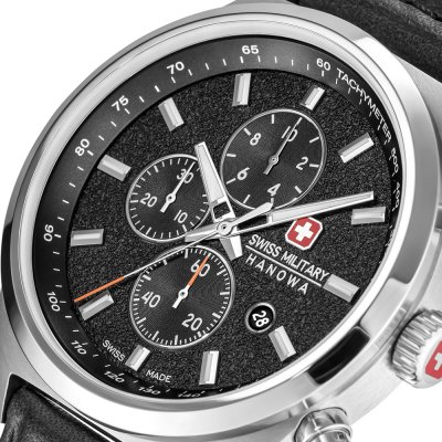 Dit Swiss Military Hanowa horloge heeft een kast gemaakt van Roestvrijstaal met een diameter van 43 mm en is voorzien van een leren band. In de kast bevindt zich een Ronda kwaliteitsuurwerk en is afgewerkt met Saffierglas.