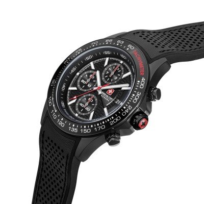 Dit Swiss Military Hanowa horloge heeft een kast gemaakt van Roestvrijstaal met een diameter van 43 mm en is voorzien van een Rubber band. In de kast bevindt zich een Ronda kwaliteitsuurwerk en is afgewerkt met Saffierglas.