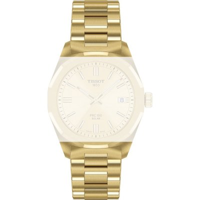Dit Tissot horlogebandje is gemaakt van roestvrij staal en wordt aan het horloge bevestigd door middel van quick release pushpins. De band heeft een breedte van 18 mm en wordt gesloten door middel van een vouwsluiting met drukknoppen. De band heeft geen rechte aanzet wat betekent dat deze band alleen geschikt is voor de horloges die hieronder worden vermeld.