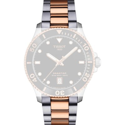 Dit Tissot horlogebandje is gemaakt van roestvrij staal en wordt aan het horloge bevestigd door middel van quick release pushpins. De band heeft een breedte van 20 mm en wordt gesloten door middel van een vouwsluiting met drukknoppen en veiligheidsklep. De band heeft geen rechte aanzet wat betekent dat deze band alleen geschikt is voor de horloges die hieronder worden vermeld.