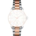 Dit Tissot horlogebandje is gemaakt van roestvrij staal en wordt aan het horloge bevestigd door middel van quick release pushpins. De band heeft een breedte van 18 mm en wordt gesloten door middel van een vouwsluiting met drukknoppen en veiligheidsklep. De band heeft geen rechte aanzet wat betekent dat deze band alleen geschikt is voor de horloges die hieronder worden vermeld.