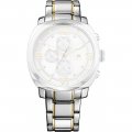 Dit Tommy Hilfiger horlogebandje is gemaakt van roestvrij staal en wordt aan het horloge bevestigd door middel van bandpennen. De band heeft een breedte van 22 mm en wordt gesloten door middel van een vouwsluiting met drukknoppen. De band heeft geen rechte aanzet wat betekent dat deze band alleen geschikt is voor de horloges die hieronder worden vermeld.