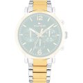 Dit Tommy Hilfiger horlogebandje is gemaakt van roestvrij staal en wordt aan het horloge bevestigd door middel van bandpennen. De band heeft een breedte van 22 mm en wordt gesloten door middel van een vouwsluiting met drukknoppen. De band heeft geen rechte aanzet wat betekent dat deze band alleen geschikt is voor de horloges die hieronder worden vermeld.